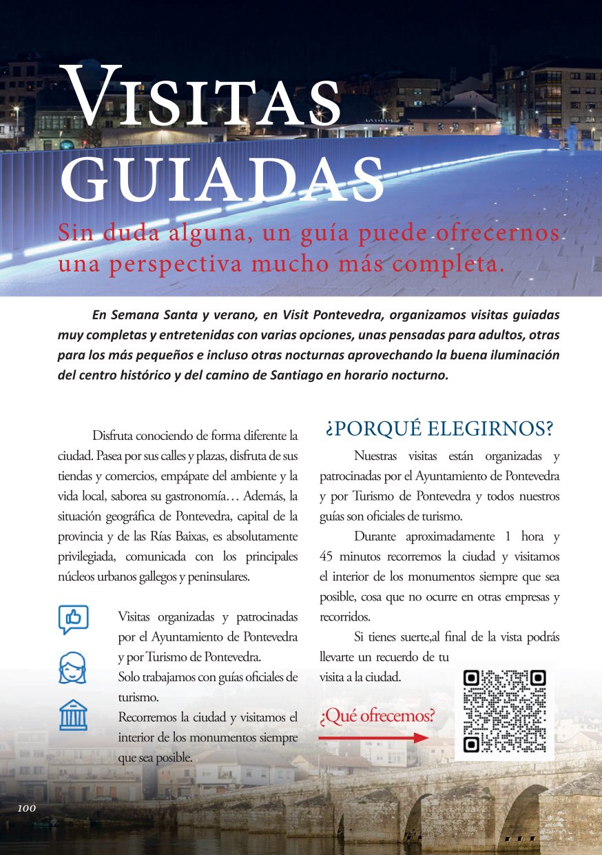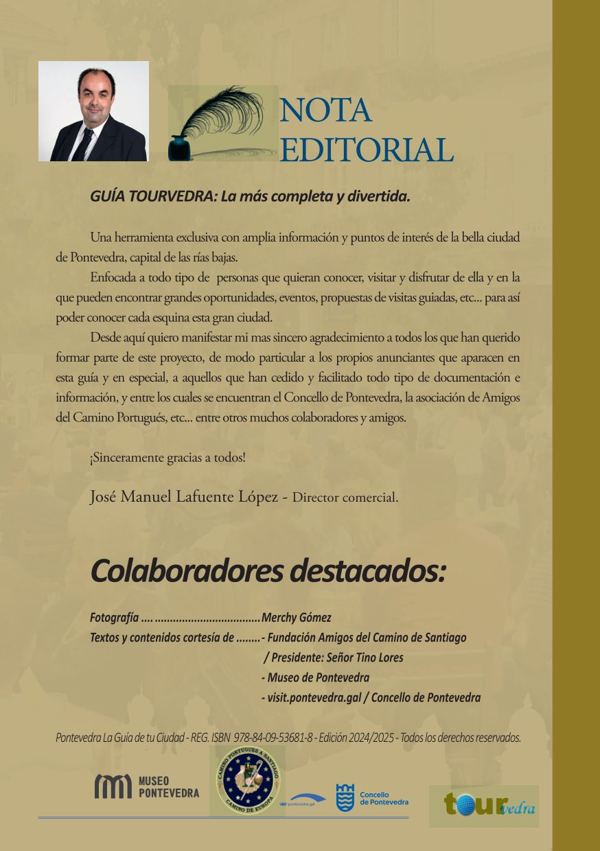 «Guía Tourvedra», una guía turística completa y divertida sobre la ciudad de Pontevedra, en Galicia, España. La guía está diseñada para todo tipo de personas que deseen conocer, visitar y disfrutar de la ciudad, ofreciendo información sobre puntos de interés, eventos, visitas guiadas y oportunidades en la zona. Te ofrecemos esta vista en fotos pero recuerda que puedes descargarla ahora pulsa: GUÍA TOURVEDRA
